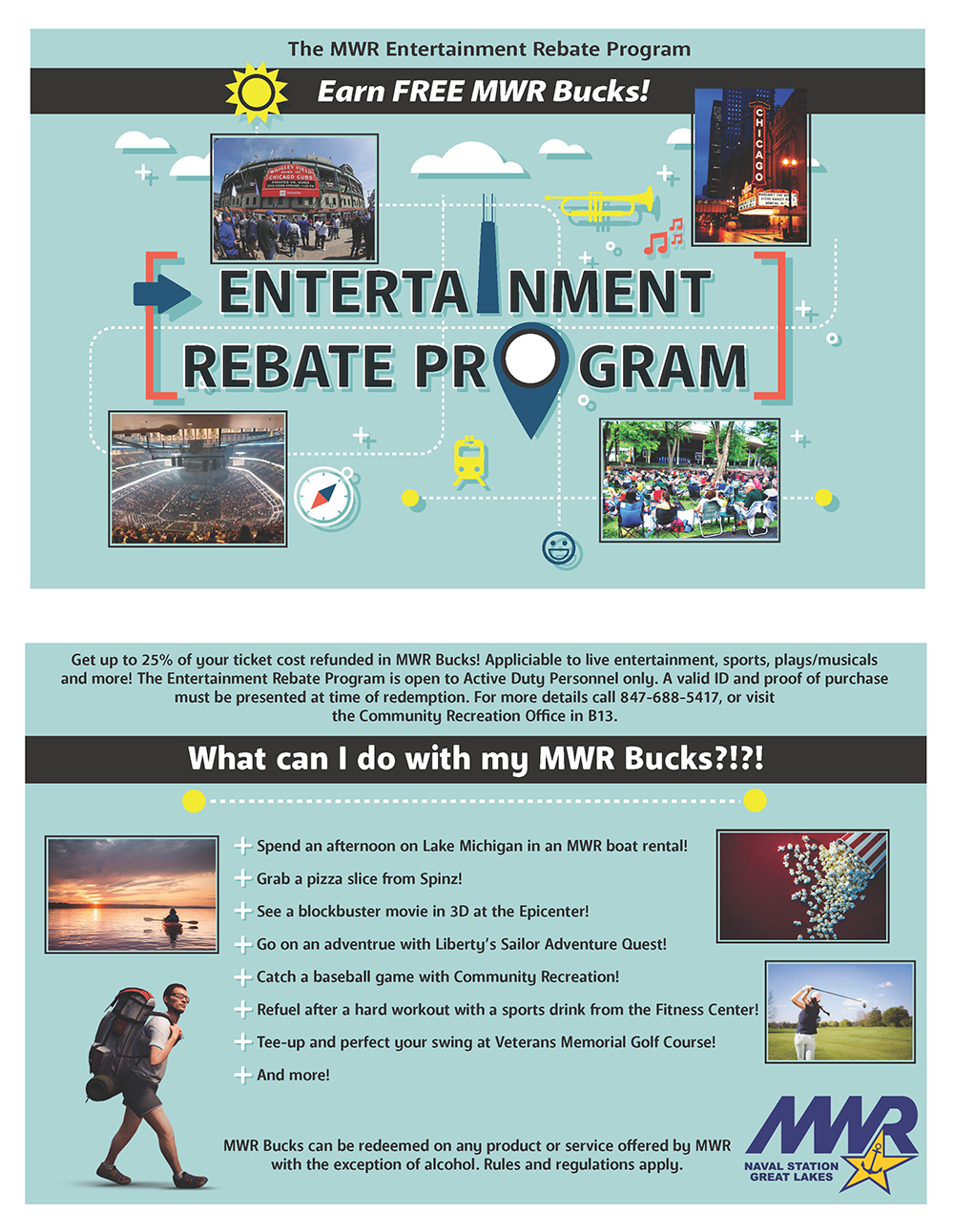 Community Recreation Tickets & Travel offers maps, brochures, local train schedules, and general information available for the local and Chicagoland area attractions; as well as maps and information for on base events, programs, and facilities. *Pricing listed in brochures subject to change. Call 847-688-5417 for most current pricing.