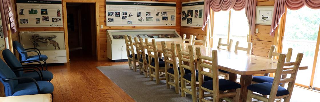 Located in Chesapeake, Virginia on the North Carolina border, the Log Cabin Conference Center is one of the Navy’s best kept secrets. Our beautiful rustic conference center includes two small conference rooms with seating for six, two large conference rooms with seating for 20 and a small kitchenette, and makes a great location for offsite, small luncheons, training or celebrations.